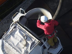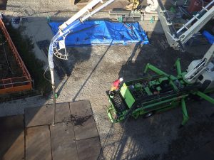 ポンプ車によって高さがある場所や広大な場所にコンクリートを打ち込むのですが、