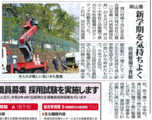 清川村内の幼稚園・小学校・中学校の校内整備活動が